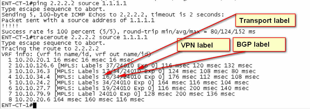 8 172.17.12.2 [MPLS: Labels 17/19 Exp 0] 128 msec 108 msec 132 msec