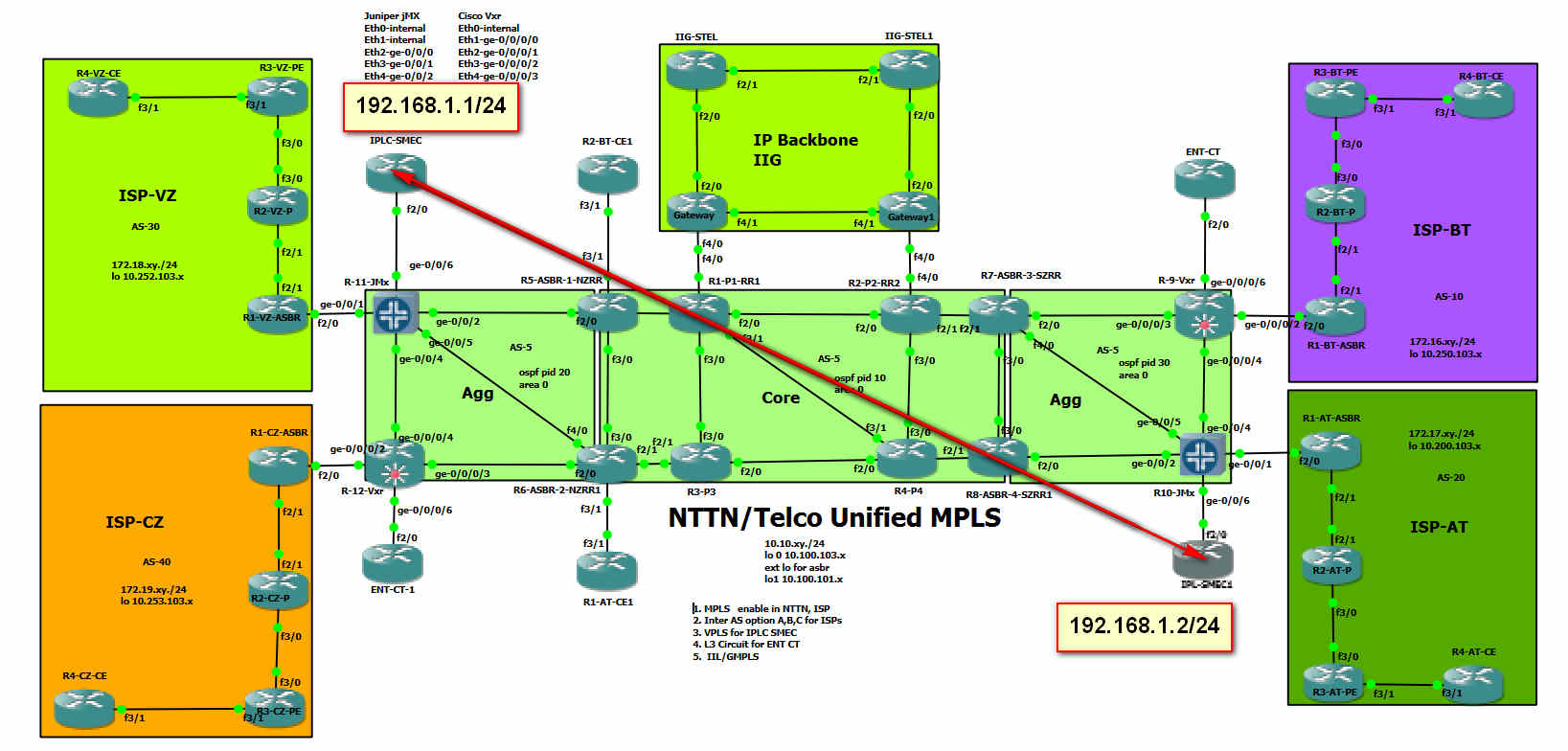 Configure NTTN IP addressing, IGP,BGP, MPLS, Unified MPLS